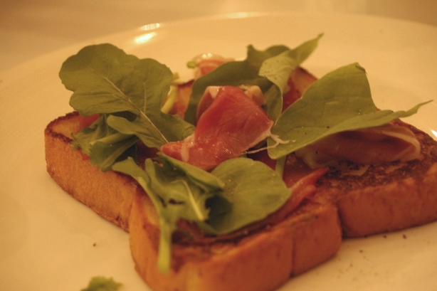 まずは、生ハムとルッコラのフレンチトースト